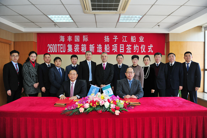 我集團(tuán)與海豐國(guó)際本年度第三次合作,12月19日,雙方共同簽署6+2+2艘2600TEU集裝箱新造船建造合同。集團(tuán)董事長(zhǎng)任樂天先生,集團(tuán)副總經(jīng)理杜成忠先生、張濤先生,海豐國(guó)際董事局副主席兼首席執(zhí)行官楊現(xiàn)祥先生攜夫人,海豐航運(yùn)集團(tuán)副總裁肖森元先生,上海海事大學(xué)校長(zhǎng)陸靖先生,上海海事大學(xué)商船學(xué)院黨委書記曹紅奮女士,上海海事大學(xué)商船學(xué)院院長(zhǎng)肖英杰先生,上海船舶研究設(shè)計(jì)院院長(zhǎng)呂智勇先生等共同見證新訂單成功簽約。