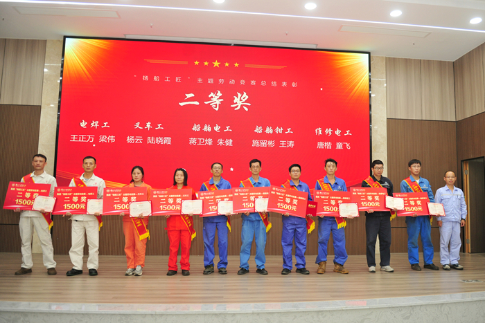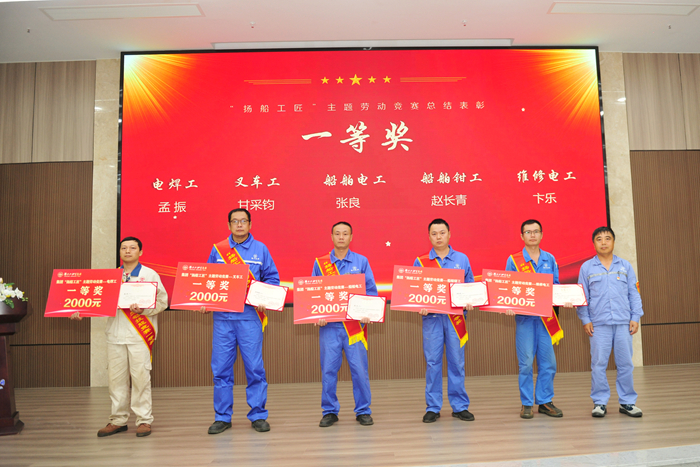 9月4日,揚(yáng)子江船業(yè)集團(tuán)2024年“揚(yáng)船工匠”主題勞動競賽總結(jié)表彰會在集團(tuán)行政大樓多功能廳隆重舉行。集團(tuán)副總經(jīng)理兼新?lián)P子造船總經(jīng)理杜成忠、新?lián)P子造船副總經(jīng)理倪榮 、新?lián)P子造船總經(jīng)理助理茆宏兆、揚(yáng)子鑫福造船總經(jīng)理助理劉銀君,以及各造船子公司黨支部、工會領(lǐng)導(dǎo)、生產(chǎn)管理部領(lǐng)導(dǎo)、相關(guān)競賽承辦車間部門領(lǐng)導(dǎo)、獲獎職工代表和裁判員代表等百余人參加會議。